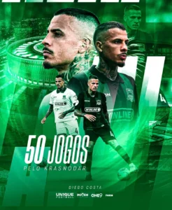 No último domingo, no empate em 1 a 1 com o Lokomotiv, pelo Campeonato Russo, o zagueiro Diego completou 50 partidas pelo Krasnodar – 32 na temporada 2024/25 e 18 na 2025/26.