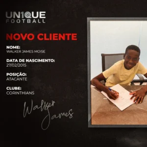 Walker James, atacante do Corinthians Sub-11 é o novo cliente da Un1que Football. O jovem é um dos grandes destaques da geração 2015 do Alvinegro Paulista.