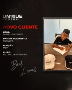 Biel Lemes, meia-atacante do Red Bull Bragantino Sub-10, é o novo cliente da Un1que Football. O jogador faz parte da forte geração 2016 do clube paulista.